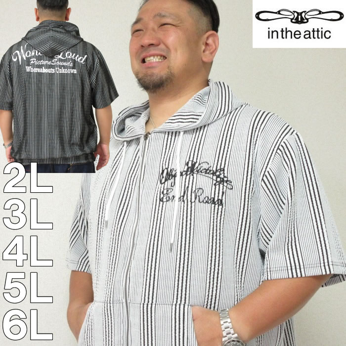 大きいサイズ メンズ in the attic-ランダム膨れ 刺しゅう 半袖 フルジップ パーカー(メーカー取寄)(インジアティック) 2L/3L/4L/5L/6L